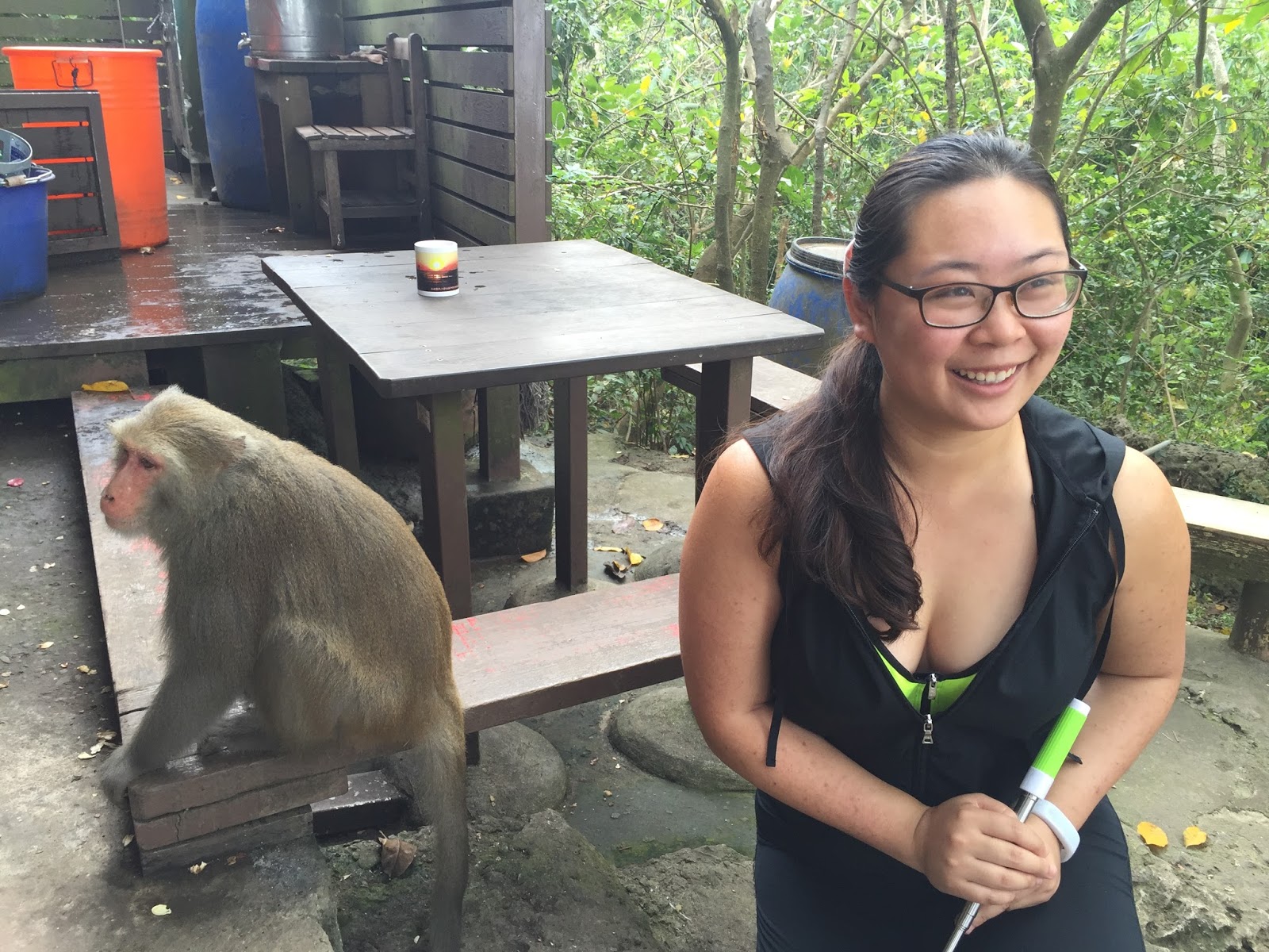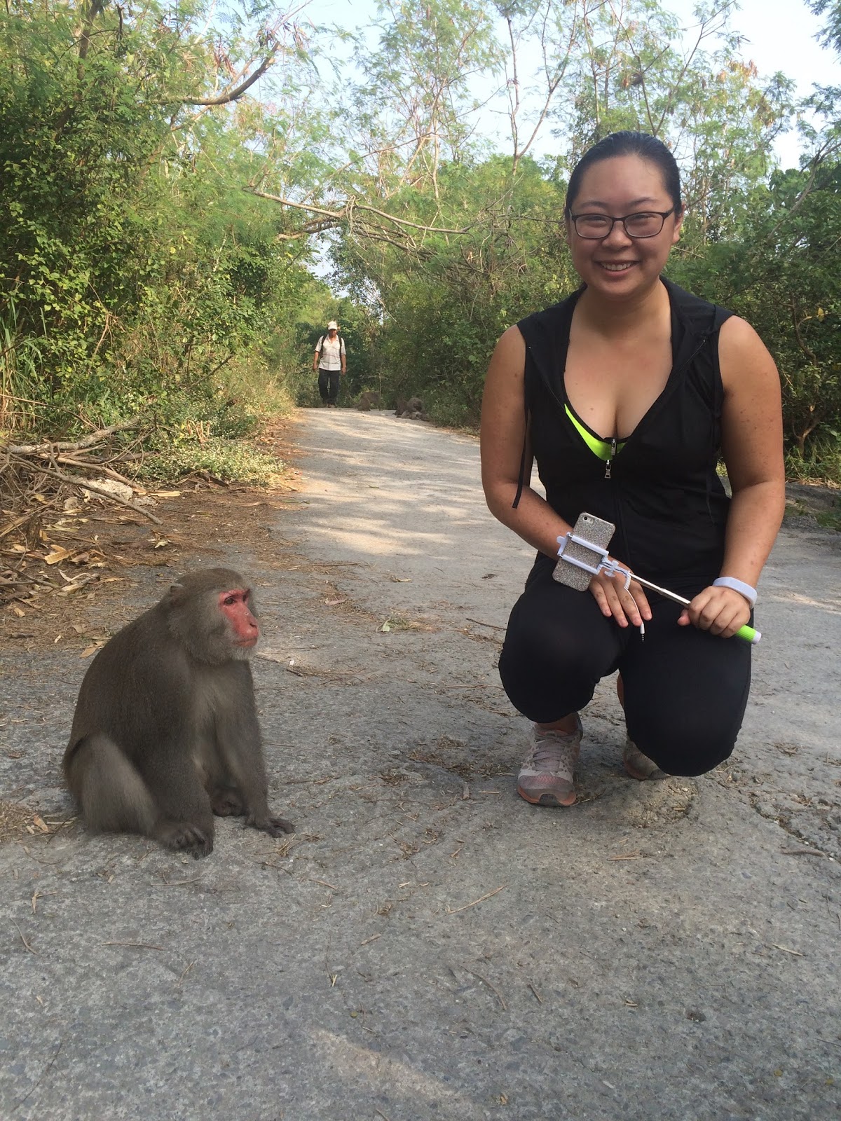 We brought water with us and kept it in a backpack.  On the way up, we did encounter a small group of monkeys.  Luckily, none of them attacked our backpack for water, but they didn’t take a liking to Josh’s black self stick.